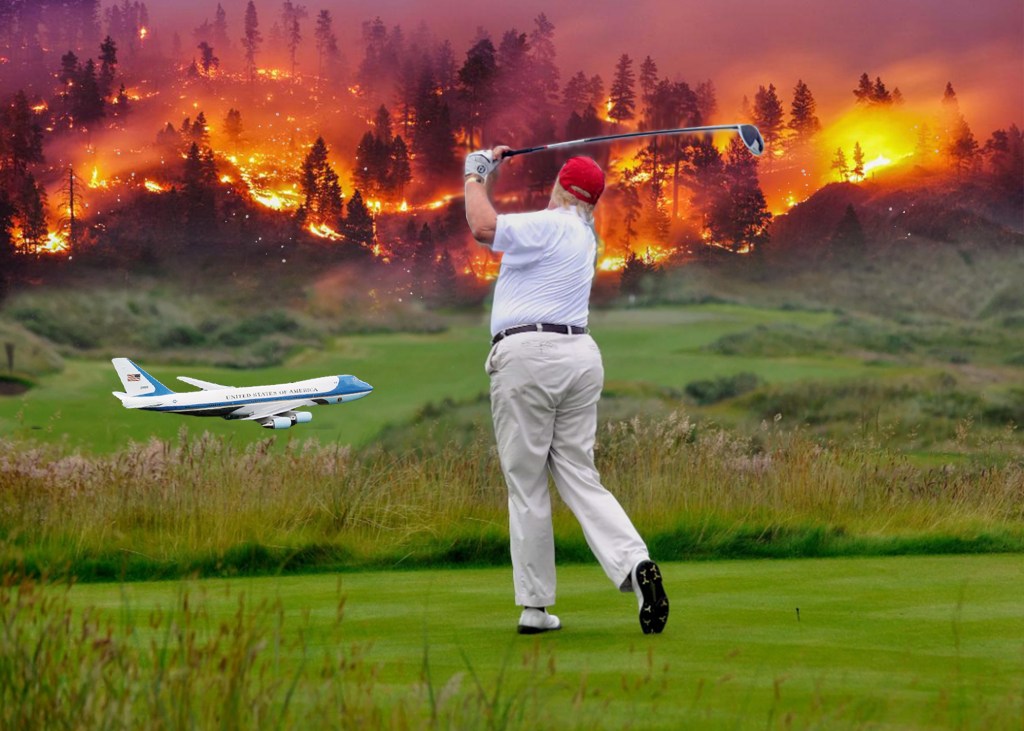 Overall, the manipulated image serves as a commentary on President Trump’s lack of regard towards the environment, and specifically climate change-induced disasters. While Australia was suffering from major fires a few months ago as a result of climate change, President Trump still enjoyed personal travels that contributed to global warming.