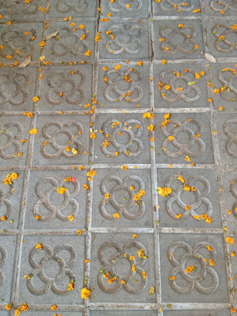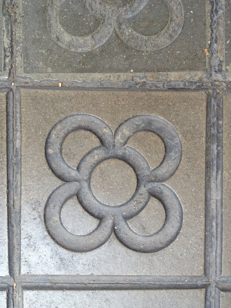 The most recognizable Barcelona sidewalk tile — the 4 petaled flower